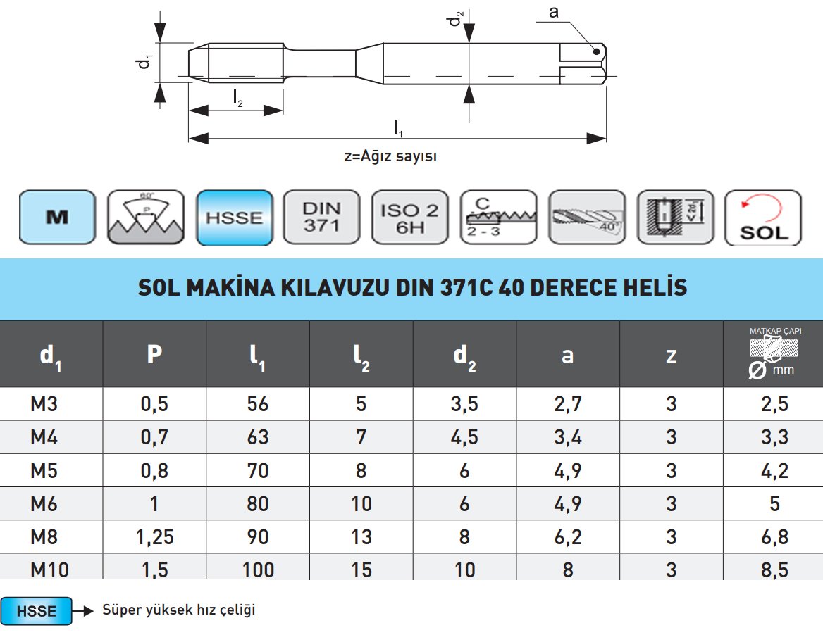 Narex M3x0.5 Sol Helis Makina Kılavuzu DIN 371C
