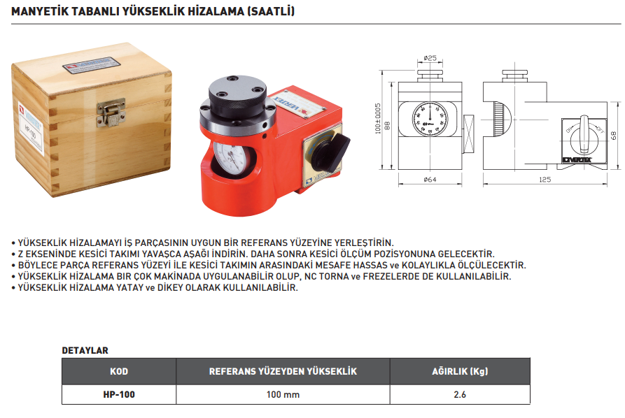VERTEX HP-100 Manyetik Tabanlı Yükseklik Hizalama 100 mm