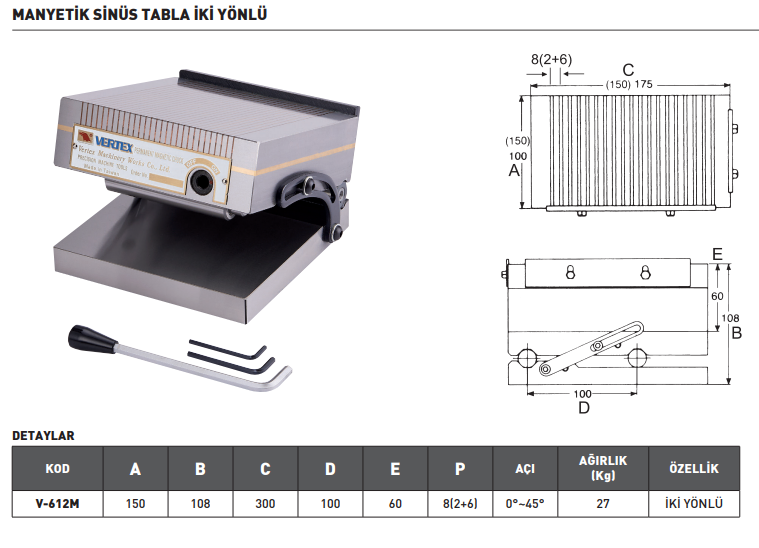 VERTEX V-612M Manyetik Sinüs Tabla İki Yönlü
