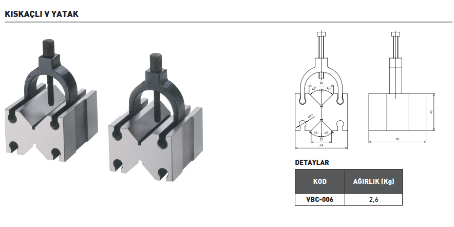 VERTEX VBC-006 Kıskaçlı V Yatak 64x70x45 mm