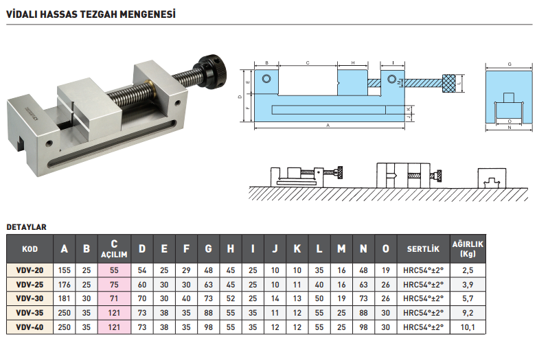 VERTEX VDV-35 Vidalı Hassas Tezgah Mengenesi 88x121 mm