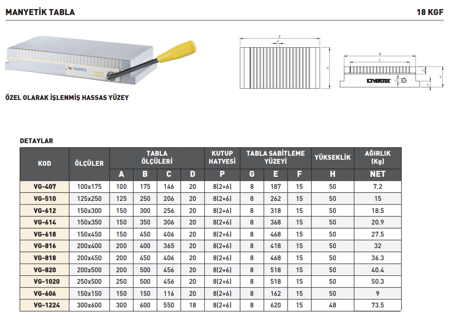 VERTEX VG-614 Manyetik Tabla 150x350 mm