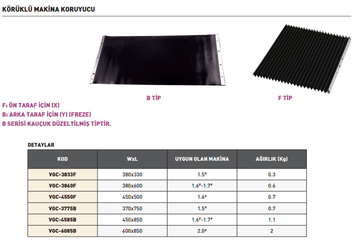 Vertex VGC-3860F Körüklü Makina Koruyucu 380x600mm (Akordiyon)