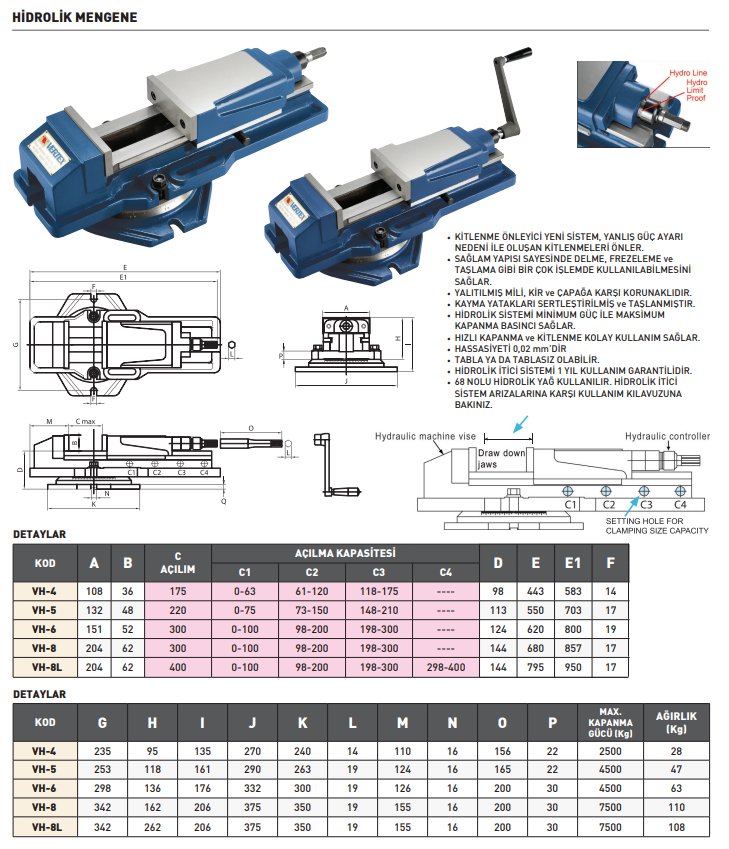 VERTEX VH-4 Hidrolik Mengene 108x175 mm 2.5 Ton