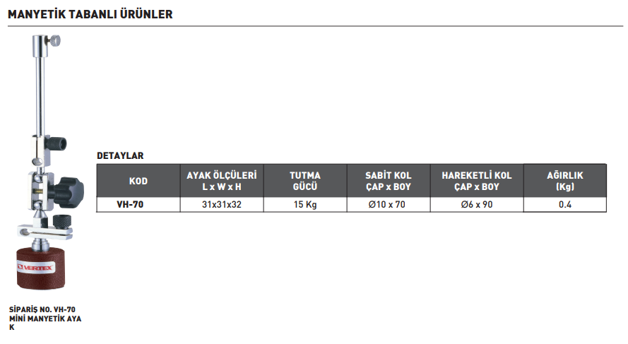 VERTEX VH-70 Mini Manyetik Ayak 70x90 mm