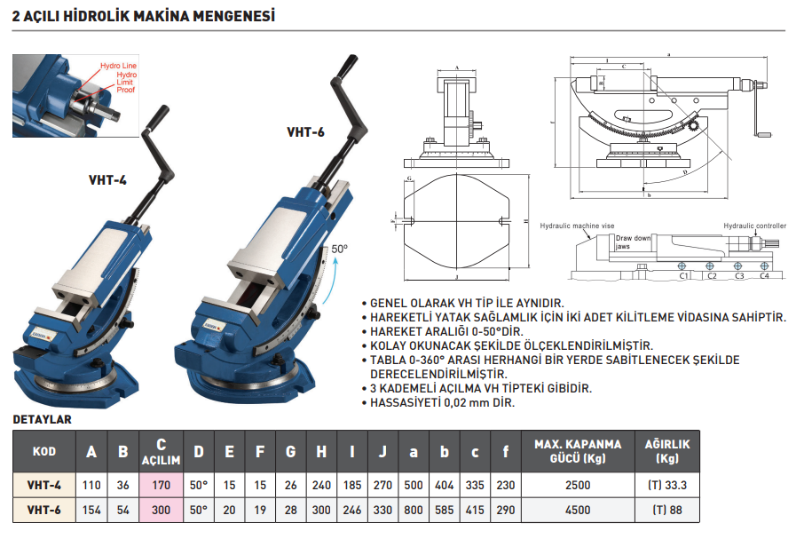 VERTEX VHT-6 2 Açılı Hidrolik Makina Mengenesi 154x300 mm 4.5 Ton