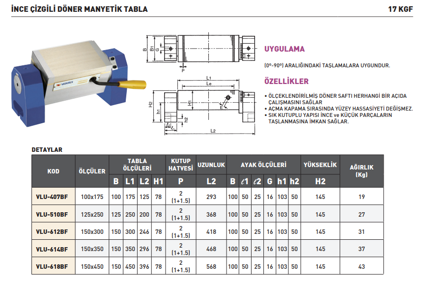 VERTEX VLU-612BF İnce Çizgili Döner Manyetik Tabla 150x300 mm