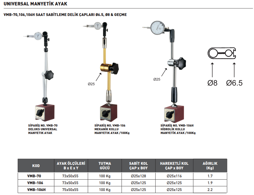 VERTEX VMB-70 Deluks Üniversal Manyetik Ayak 198x116 mm 100Kg